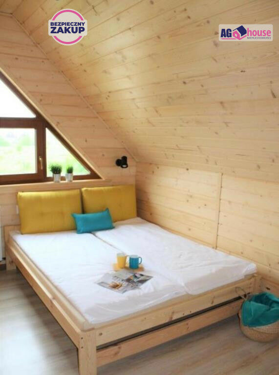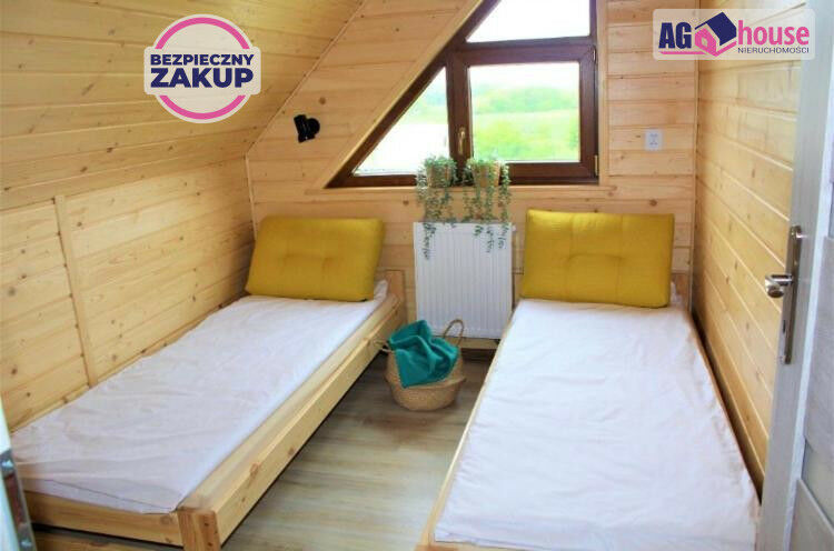 Część działki już zabudowana 4 domkami letniskowymi - wszystkie w pełni wyposażone (aneks kuchenny, łazienka, sypialnia, salon, taras) oraz 1 budynkiem gospodarczym